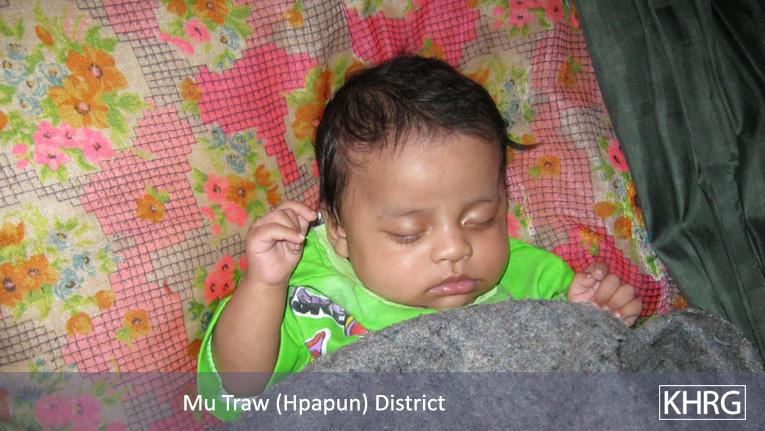 This photo, taken on January 1st 2011, shows three-month-old Saw G---. His mother was shot and killed by Tatmadaw soldiers on October 13th 2010, less than 45 minutes after he was born. [Photo: KHRG]
