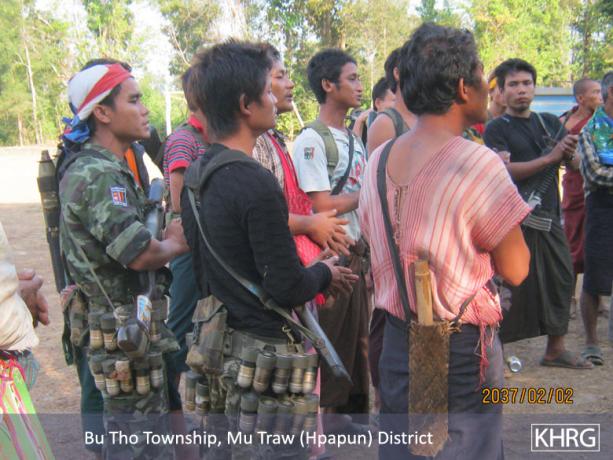 The Tatmadaw and armed groups, including the Border Guard and the DKBA [Democratic Karen Buddhist Army], are active in the area now. The KNLA [Karen National Liberation Army] is especially active in the area. They have had to actively protect the civilians to help them to survive and so that they can avoid doing forced labour for the Tatmadaw. The KNLA has taken responsibility for protecting the civilians.