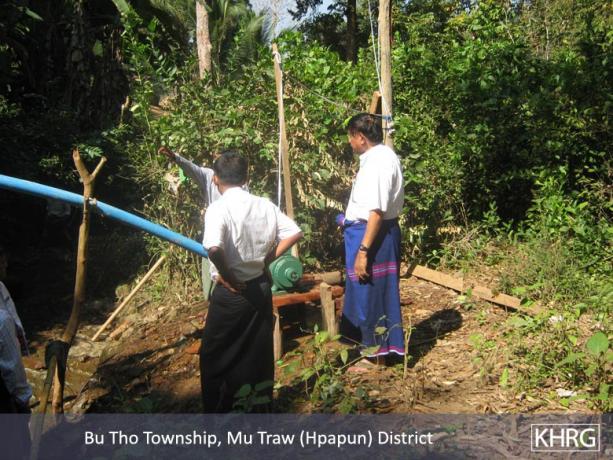 On February 3rd 2012, they [Papun district Saw Mya Htunt Way and government officials] came to C--- village to provide electricity from a hydroelectric source. They also provided pipelines that carry water to the village. After that, the villagers had to give one goat and one pig to the Papun district leader Saw Mya Htunt Way and the government officials from Papun when they came to look at the village. One goat costs approximately between 15,000 - 20,000 kyat (US $18.34 - $24.45) and one pig costs over 100,000 kyat (US $122.25). I do not know the actual cost [of the animals that were provided]. I see that this kind of help is not always beneficial for the civilians. Regarding the hydroelectric energy, the rainfall differs between the summer and the rainy season, so it will be destroyed if people are not responsible.