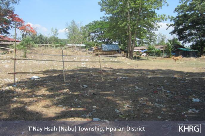 This report includes a situation update submitted to KHRG in July 2013 by a community member describing events occurring in Hpa-an District between March to May 2013, including land confiscation, killing and drug-related incidents in T'Nay Hsah Township. The situation update describes more than 1,000 acres of villagers' lands in T'Nay Hsah Township that were confiscated in the mid-1990s by Tatmadaw Battalions #547, #548 and #549. As a result, about 150 villagers have continued to shelter in a monastery for nearly two decades because their land was confiscated. Villagers appealed to local authorities by furnishing their land grants, but were informed by the Tatmadaw that their land grants are illegal and the lands belong to the military. The update also describes two villagers, a 16-year-old boy from Y--- village and a 62-year-old woman from G---, who were killed in separate incidents by BGF Battalion #1016 soldiers in T'Nay Hsah Township in disputes related to a methamphetamine pill commonly referred to as yaba. According to the report, many young people use the drug, but villagers are afraid to speak against drug abuse because BGF soldiers are involved in its sale. The update also describes two BGF veteran commanders who confiscated 20 acres of land owned by two women from H--- village, Ta Kreh Township. The commanders demanded the women pay a total of 1,100,000 kyat (US $1129.23) for return of the land; the women negotiated with the soldiers, but ultimately sold their personal belongings in order to pay for the return of their land.