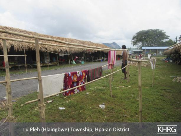 These photos were taken by a KHRG community member on October 7th 2016 at a camp for displaced villagers in Myaing Gyi Ngu Town, Hlaingbwe Township, Hpa-an District. The photos show temporary shelters that have been built for villagers who fled from Meh Th’Waw area from the fighting. [Photos: KHRG]