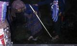 Photos #I28, I29: L--- villagers in eastern Papun District hurry to plant their hill fields in the sun because the SPDC Army is operating nearby. Villagers are easy targets while in their fields because they easily stand out and there is no place for them to hide. SPDC soldiers commonly open fire on displaced villagers working in their fields. Photos #I30, I31: The villagers of M--- village in Papun District must harvest their paddy at night during late November 2001 because of the presence of units of LID #33 about a half hour away. The villagers had to hurry to harvest their paddy before the SPDC soldiers arrived and destroyed it, leaving them with no food for the year. All of the villagers, men, women, children and the elderly worked together in the hill fields all day and all night to finish the harvest. Photos #I32, I33: Saw T---, a K--- villager, Papun District, examining the remains of his paddy barn after SPDC soldiers burned it down in mid-November 2001. In Photo #I33, Saw T---’s wife, Naw P--- is collecting the rest of their paddy that the SPDC troops did not find. This paddy will have to be stretched further now that their paddy barn has been burned down. A new crop will not be ready for harvesting for another year. Photo #I38: A young girl from P--- village in eastern Papun District sifts rice in preparation for cooking. SPDC soldiers of LIB #341 and IB #19 entered her village in mid-December 2001 and burned all the houses and paddy barns. The villagers must now go and find paddy to eat in other villages. They must travel in fear of SPDC patrols. [Photos: KHRG researcher]