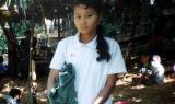 Photo #E103: Naw H---, a 35 year old Karen Christian farmer, fled K--- village in northwestern Papun District. SPDC soldiers came to the village on March 28th 2002, shot her husband dead and burned down her rice storage barn. She could no longer work her field so she has fled to Thailand to try to get into one of the refugee camps. [Photo: KHRG researcher]