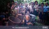 Photo #E3: Saw W---, 50 years old, is the village head of xxxx hiding site, Papun District. He and his villagers fled to an internally displaced villager hiding site after SPDC soldiers burned their village. According to him, the oppression is especially bad in this area because the SPDC says it is the place where the relatives of Bo Mya, the former president of the KNU and current commander of the KNLA, live. Many of the villagers in the area are running out of food and have been forced to eat boiled rice porridge to get through the year. He said that many people had died, most of them children. [Photo: KHRG researcher]
