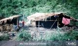 Photo #E31: Villagers from M--- village tract in western Papun District in their makeshift shelter after fleeing SPDC soldiers in late 2001. [Photo: KHRG researcher]