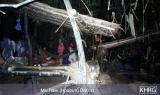 Photo #I41: P--- villagers who where forced to flee when Tactical Operations Command #333, LID #33 destroyed their village in Papun District in November 2001. The villagers ran to stay in the forest and have built small huts to live in. No one stays in their village anymore. Most of their food is gone except for what they can gather from the forest like the chillies and other vegetables on the platform. [Photo: KHRG researcher]