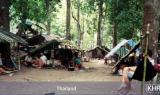 Photos #E97, E98, E99: Villagers from K--- village in eastern Papun District near the Salween River border with Thailand were forced to flee their village on May 8th 2002. SPDC troops of IB #8 and LIB #104, LID #44 and IB #19 and LIB #434 of the Southeastern Command came to the village, looted it and ate or killed the pigs and chickens and then burned the houses and rice barns. These photos were taken on May 11th 2002 after the villagers had crossed the Salween River and built small temporary shelters for themselves on the Thai side of the border. Photo #E98 shows a meeting held by the villagers to discuss what they would do next; try to return and rebuild the village or try to go to a refugee camp in Thailand. [Photos: KHRG researcher]
