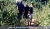 Photos #E43, E44: Villagers from T--- flee their village in Nyaunglebin District on November 12th 2001 after receiving word that a combined column of SPDC troops from IB’s #4 and 76 and LIB #111 under Captain Htun Lwin were approaching. [Photos: KHRG researcher]