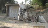 These photos were taken on March 2013 in K--- village, K’Taing Tee village tract, Dwe Lo Township, Papun District. They show the devastated car that the villagers were driving in when the landmine exploded between T--- village and K--- village. [Photos: KHRG]
