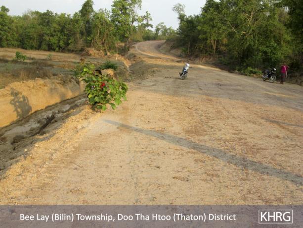 This News Bulletin describes land confiscation which occurred as a result of a road repair and expansion project in Bilin Township, Thaton District, from January 2nd – 4th, 2014. On January 2nd 2014, the Zwe Nyi Naung Company arrived in D--- village, Hta Paw village tract, Bilin Township, Thaton District to repair and expand a road. The project resulted in the confiscation of villagers’ plantation lands, paddy fields and the yard around a house. The villagers raised their concerns, as they lost their land, and they would like to be compensated for what they have lost.[1]