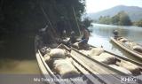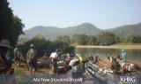 These photos were taken by a KHRG community member on January 13th 2014, in Dwe Lo Township, Hpapun District. These are photos of boats that transport rice sacks and other things for the Tatmadaw. They are a full years rations for the Burmese soldiers to consume in 2014; they asked the villagers to transport the rations, in exchange for pay. Light Infantry Battalion (LIB) #555 was based in Meh Pre Hkee camp and Hkoo Thoo Hta camp from 2013 to 2014 and Infantry Battalion (IB) #96 is based in Waw Mu camp, Kay Kaw camp and Meh Way camp. Forced labour, arbitrary taxation and asking for porters by the Tatmadaw have reduced significantly. The Tatmadaw soldiers who live in Wah Mu camp, Kay Kaw camp, Meh Way camp and Hku Thu Hta asked the village heads to arrange the boats pictured to transport their rations, which will supply them for a year. The villagers who have boats did it. The Tatmadaw soldiers provided fuel and boat propellers for the villagers who participated, and the villagers were very happy. Some boat owners said that the Tatmadaw soldiers were becoming more and more friendly. In the past, the Tatmadaw forced the villagers to transport things and the villagers were very fearful of them. Cases of forced labour and arbitrary taxation have reduced following the ceasefire and the villagers view this as a positive development. [Photos: KHRG]