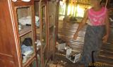 These photos were taken on August 2nd 2017 in N--- village, Doo P’Leh Oh Klo Hkoh area, Ta Naw Th’Ree Township, Mergui-Tavoy District. The photo on the left shows the drug paraphernalia Saw Kyaw Win used to consume yaba and crystal yaba. The photo on the right shows Saw Kyaw Win’s mother pointing at the household furniture that Saw Kyaw Win damaged [when he was under the influence of drugs]. After Saw Kyaw Win attempted to murder her, she did not feel safe to live with him. She reported this case to the Karen National Union [KNU] Ta Naw Th’Ree Township level police officers. [Photos: KHRG]