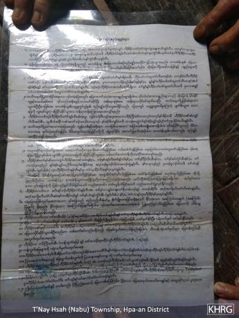 Naw U--- has a Karen National Union (KNU)[4] land ownership certificate. She showed it to the KNU/KNLA-PC, without result. She used to pay land taxes to the KNU but, two years ago, the local village head said she did not need to pay taxes anymore because her lands had been confiscated by the KNU/KNLA-PC already.