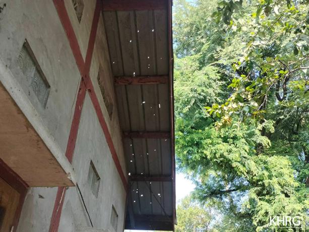 These photos were taken in October 2024 in E--- village, P’Saw Loh village tract, Daw Hpah Hkoh Township, Taw Oo District. These photos show villagers’ houses in E--- village which were damaged by the SAC shelling that was conducted on October 8th 2024. The shelling also injured four villagers, including two children. [Photos: KHRG]