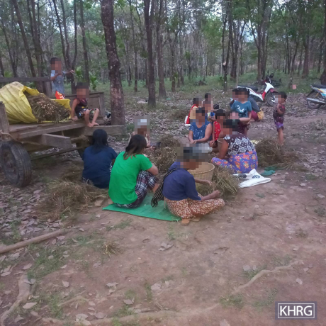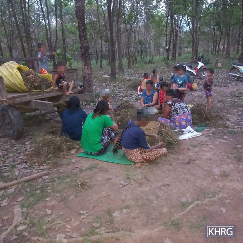 This photo was taken in February 2024 in a plantation in Dn--- village, Meh Naw Ah village tract, Kaw T’Ree Township, Dooplaya District. The photo shows displaced villagers from Meh Naw Ah village tract, processing peanut crops they brought to a secured area to support their livelihoods, after the SAC conducted air strikes on civilian areas, including shelling attacks on January 26th and 29th 2024 in Kyeh Doh Town, located near Mee Naw Ah village tract. [Photo: KHRG]