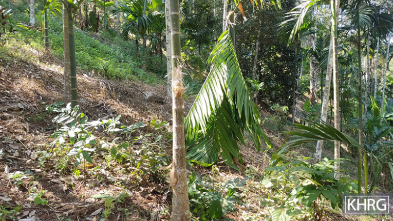 These photos were taken in November 2024 in a plantation area between Cs--- and Ct--- villages, Yay Tho Kyi village tract, Htaw Ta Htoo Township, Taw Oo District. On November 21st 2024, SAC soldiers from MOC #20 army camp (near Cr--- village, Kaw Thay Der village tract, Htaw Ta Htoo Township), Thit Say Taung army camp (Htaw Ta Htoo Township), and Pyaung Tho army camp (Daw Hpah Hkoh Township) fired about ten 120 mm and 60 mm mortar rounds into civilian areas, including a road and villagers’ plantations. At the time of the incident, six villagers were working on the plantation. The mortar explosion killed a man named Saw Cu---, who was over 30 years old, and injured a 55-year-old woman named Naw Cv---. After the incident, villagers called a car operated by a local volunteer group from Taw Oo Town that provides transportation services. The car transported them to Taw Oo public hospital for medical treatment. The hospital is administrated by the government. The photo on the left shows a rubber boot owned by one of the victims, left at the incident place. The photo on the right shows damage to villagers’ betel nut trees caused by mortar shells that exploded on a plantation owned by a villager named Saw Au---.[30] [Photo: KHRG]