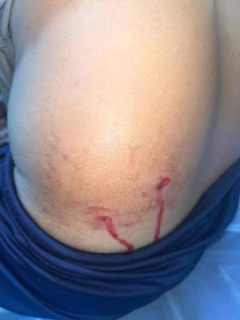 Naw B--- (27 years old), a teacher from Ab--- village, Pee THka village tract, sustained injuries to her chest and lower abdomen. She explained to KHRG: “Recently, I have not been able to move easily. It is uncomfortable for me to breastfeed my child because I was injured on my breast, and I need to take medicine. My child is only four months old. When I go to the clinic again, I will need to rent a car since I don’t have one of my own. The school had to close, but I am not sure how long it will remain closed.”