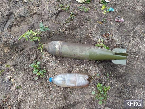 These photos were taken in May 2025 in Au--- village, Thay Baw Boh village tract, Kaw T’Ree Township, Dooplaya District. On May 29th 2025, an SAC fighter jet came and dropped multiple bombs on Au--- village, including at least two 250-pound bombs, despite the absence of fighting in the village. Bombs landed inside a school’s compound in the village, and one remained unexploded. The air strike damaged the school building. This school is administered by the KECD. The explosions also damaged four houses. The photos show the unexploded bomb dropped by the SAC fighter jet. [Photos: KHRG]