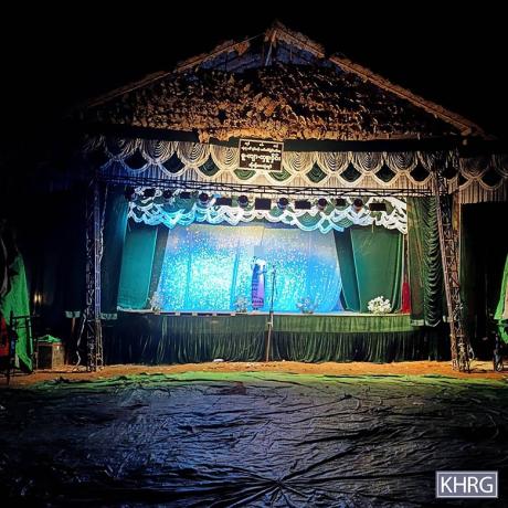 These photos were taken in December 2025, in Af--- village, Htee Hpoh Tray village tract, Ta Kreh Township, Hpa-an District. These photos show the stage that was set up for traditional entertainment performances during the Our Day events that were held in Af--- village. [Photos: KHRG]