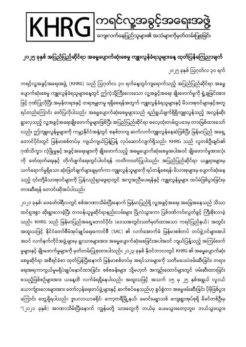 အနာဂတ်တွင် ဖြစ်ပွားလာနိုင်မည့် လူအခွင့်အရေးချိုးဖောက်မှုများကို ကာကွယ်ရန်နှင့် မှတ်တမ်းပြုစုရန်အတွက် ကျွန်ုပ်တို့မှ CBOs နှင့် EAOs များအား လူ့အခွင့်အရေးအသိပညာသင်တန်းများနှင့် အပြည်ပြည်ဆိုင်ရာလူသားချင်းစာနာထောက်ထားမှု ဥပဒေများဆိုင်ရာ သင်တန်းများကို ပို့ချသင်ကြားပေးပါသည်။