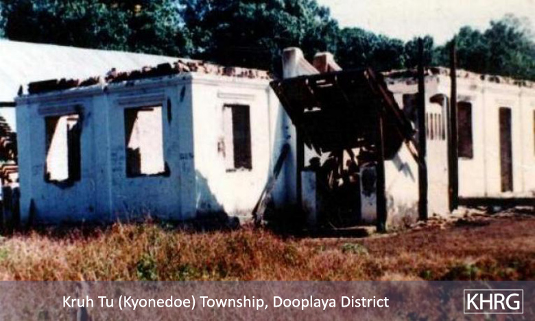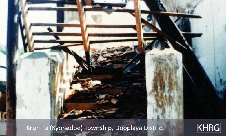 Photo #4: Middle school in Tee Ghu Thaw village, Kyone Doh Township, burned and destroyed by SLORC troops of LIB 546 and DKBA troops commanded by Pa Day on 22 November 1996. [Photo: KORD]