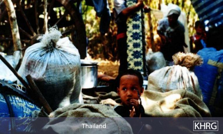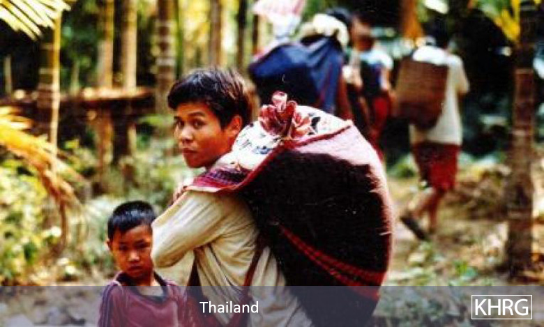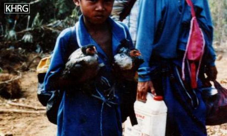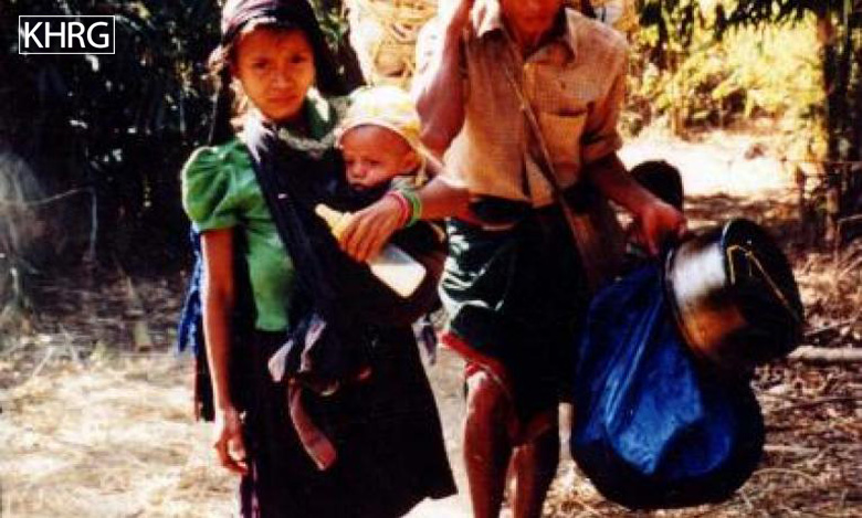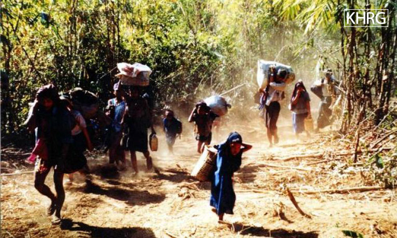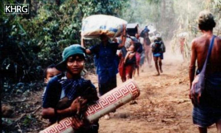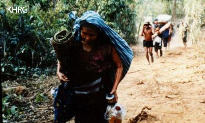 Photo #106: Villagers fleeing to Thailand through Meh Tharoh Kee, after SLORC had occupied the area. [Photo: KHRG]