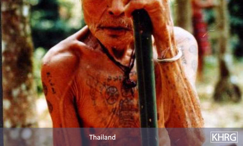 Photo #107: Telekoo refugee from southern Dooplaya District. The Telekoo are a strict religious sect, believing in a second Buddha, practising quite differently from other Buddhists, and leading a religiously disciplined lifestyle. Other Karens attribute them with spiritual powers such as the ability to read minds. The Telekoo are quite prevalent in the area. 1,500 of them fled across the border in Lay Taw Ku area alone - then SLORC and DKBA occupied their villages and sent a message across the border that they would burn down Telekoo villages in Thailand if the refugees were not forced back. Several hundred returned to Burma, while the others fled over the hills further into Thailand. [Photo: KHRG]
