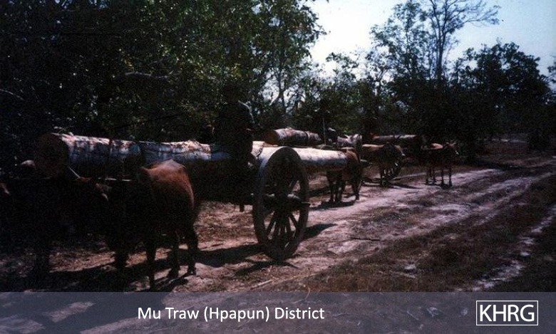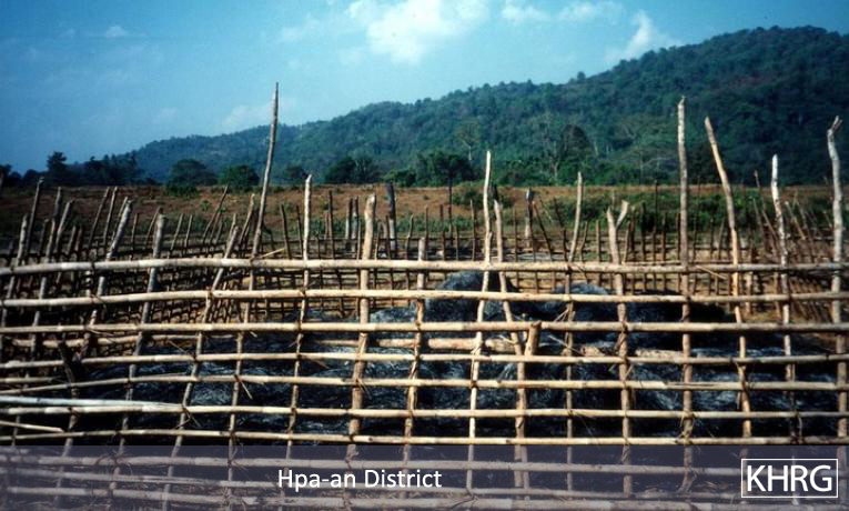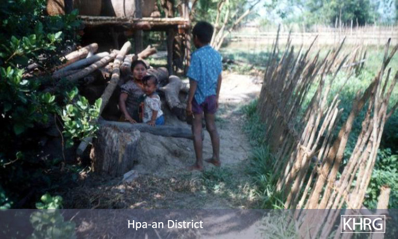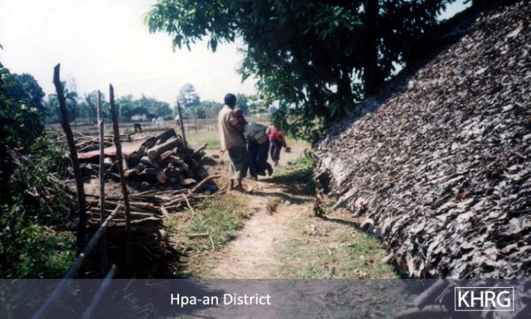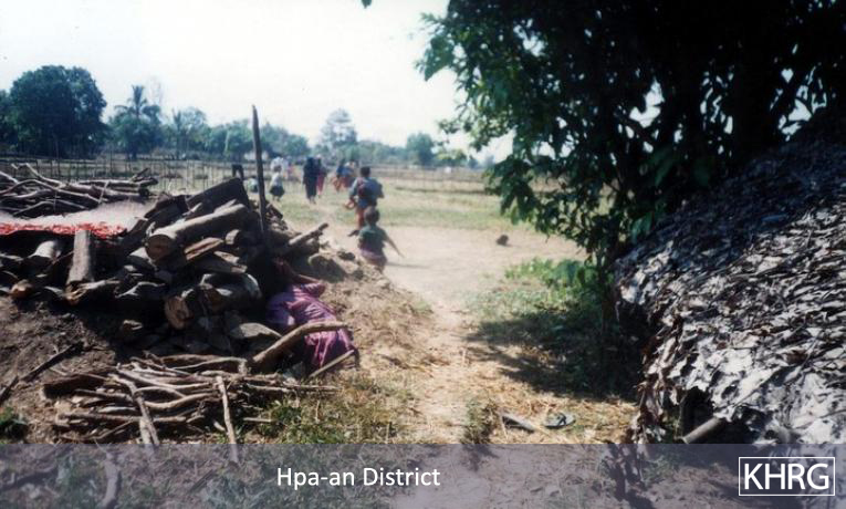 Photo #B76: This bunker was built by villagers in xxxx village, Pa’an District, to flee into if fighting broke out near the village. The logs have been placed on the top of the bunker for extra protection. [Photo: KHRG researcher]