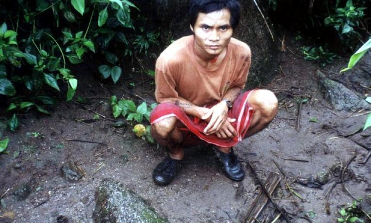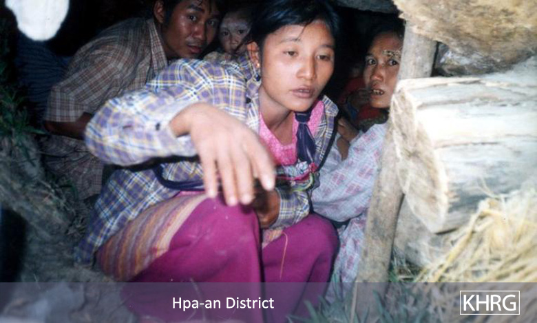 Photos #B1, B2, B3, B4: Villagers from xxxx village, Pa’an District, run and hide in their bunkers during fighting between KNLA and SPDC/DKBA soldiers in early 2002. The fighting occurred about 150 metres from the village and lasted from 9:30 a.m. to 3:20 p.m. When the shells and bullets began to get too close the villagers were forced to run out from their bunkers and into the nearby forest (Photos #B3 and B4). None of the villagers were killed or wounded during the fight. [Photos: KHRG researcher]