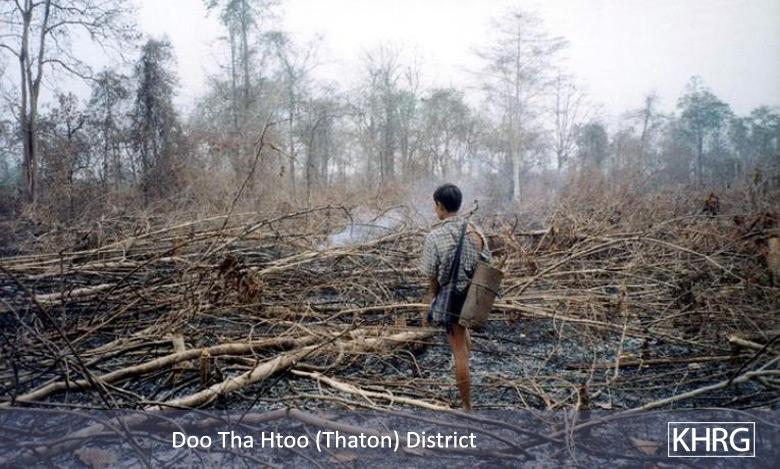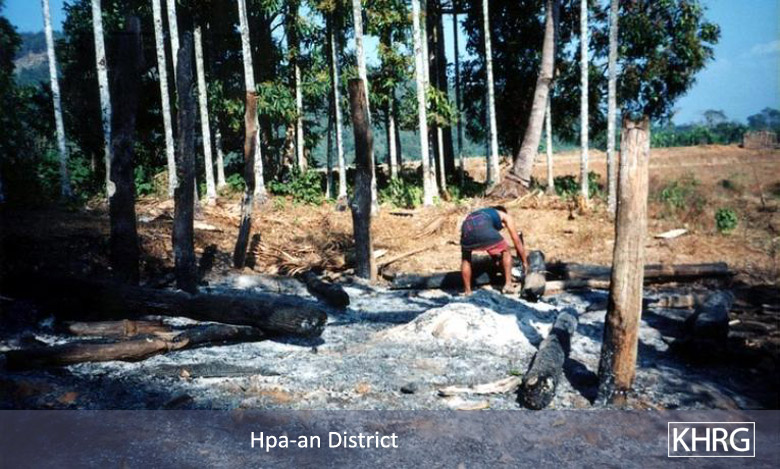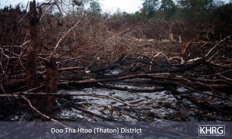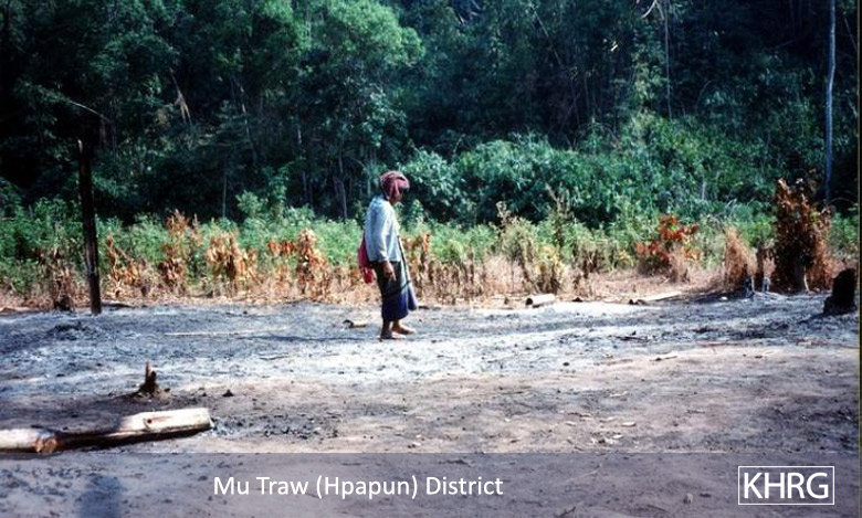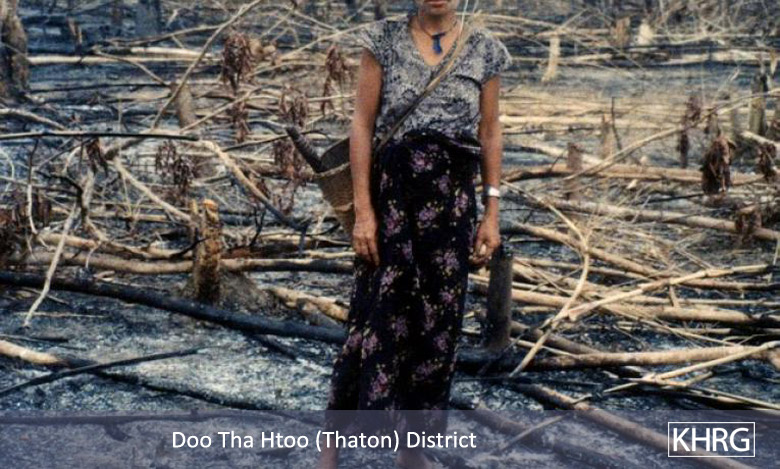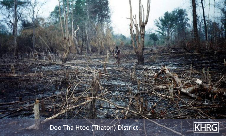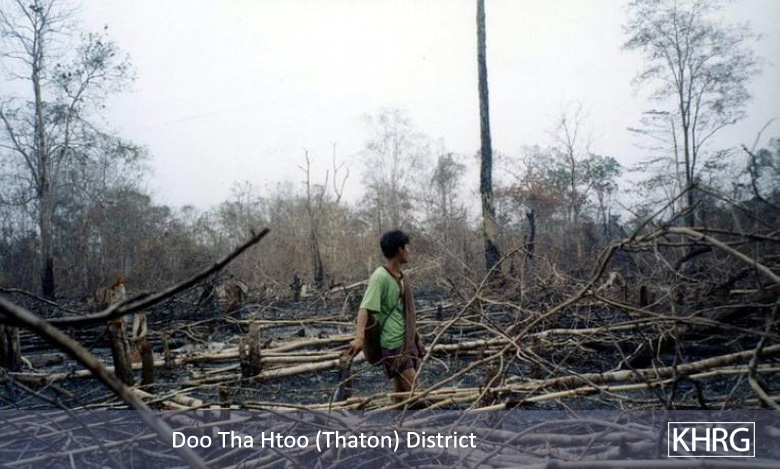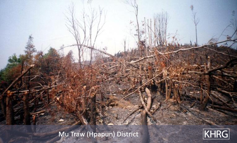 Photos #I11, I12, I13, I14: These fields belonging to villagers from K--- village in Thaton District were burned off prematurely by SPDC soldiers of LID #44, LIB #118, Column #1 under Battalion Deputy Commander Saw Leh Soe on March 13th 2002. [Photos: KHRG researcher]