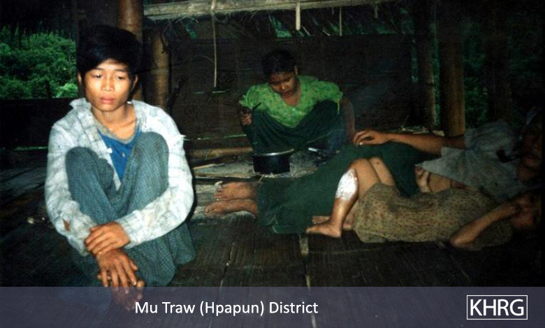 Photos #E10, E11: These two women, Naw L--- (50 years old) and Naw H---, fled from W--- village in Papun District when SPDC soldiers opened fire on the village. Naw L--- became lost in the forest and was not found until three days later. [Photo: KHRG researcher]