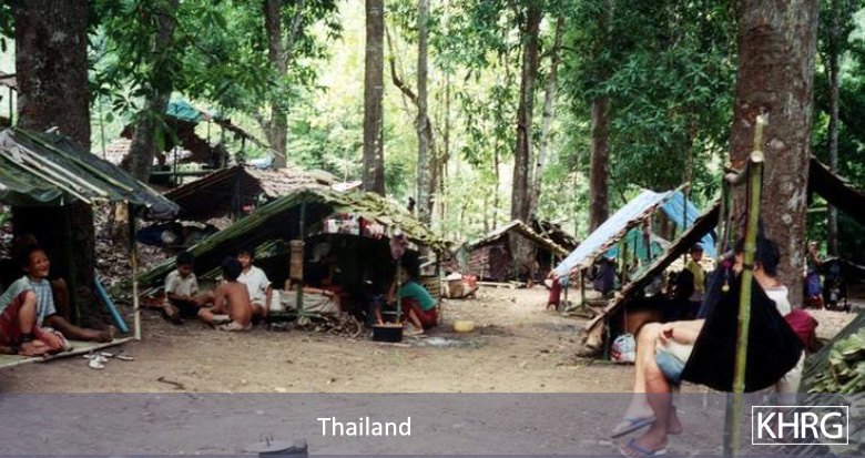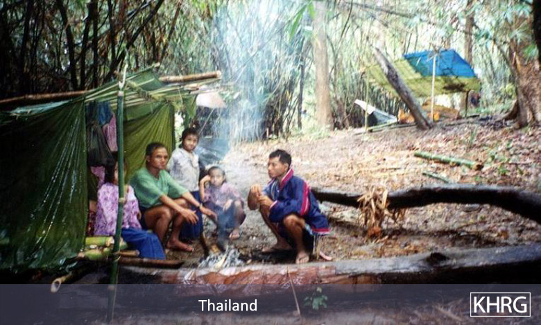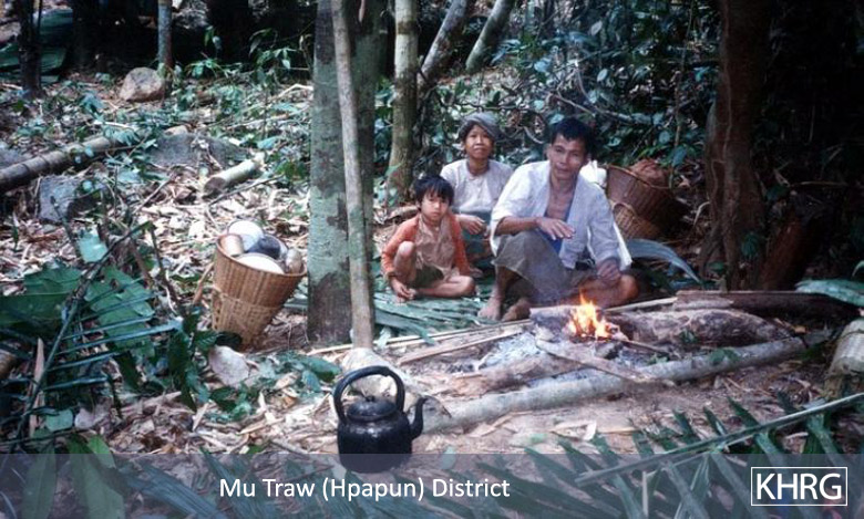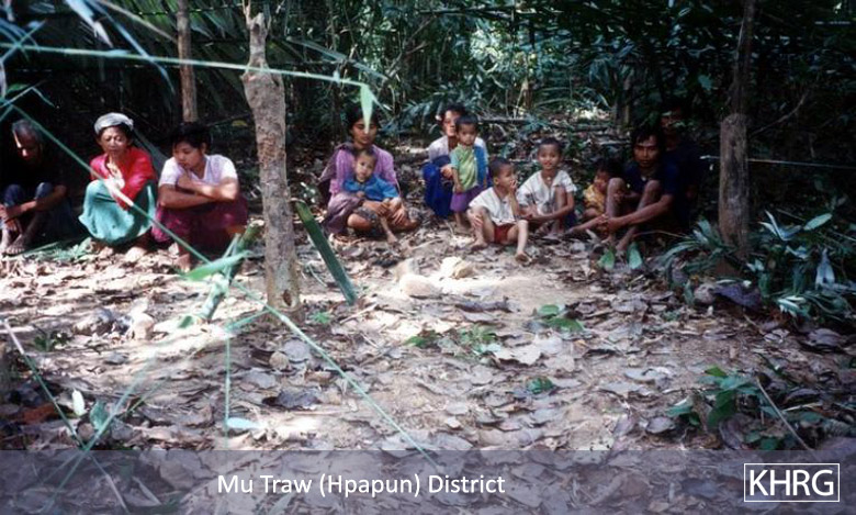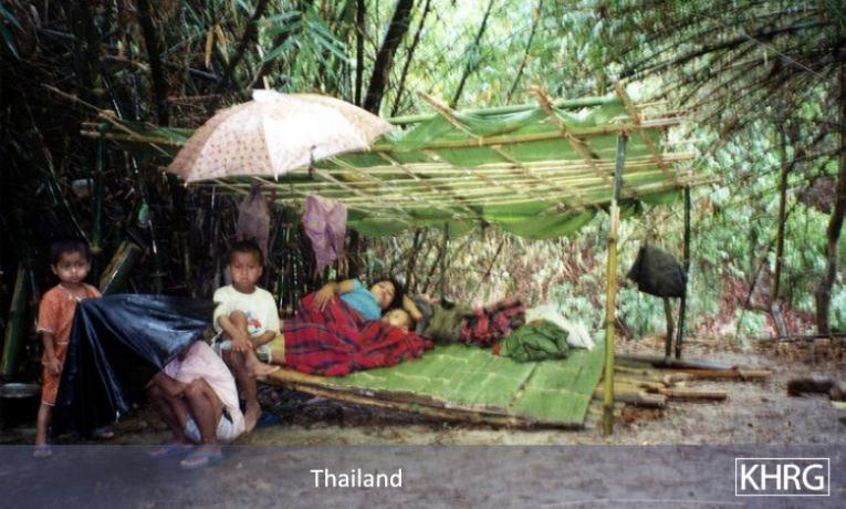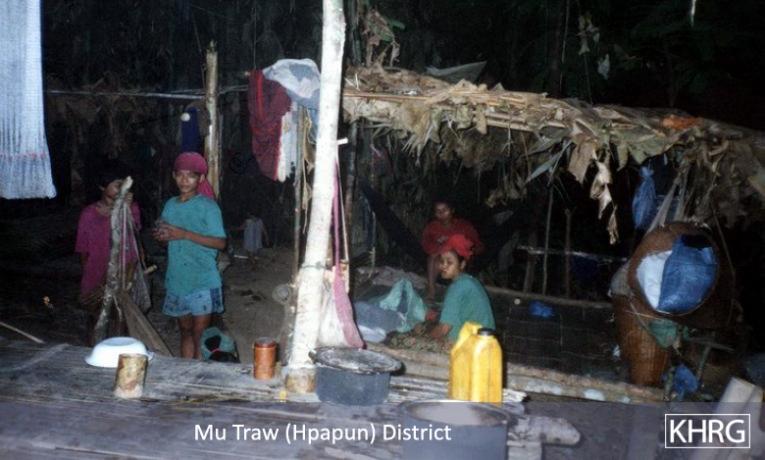 Photo #E24: T--- villagers in there new hiding place in the forest after fleeing SPDC battalions in northern Papun District. [Photo: KHRG researcher]