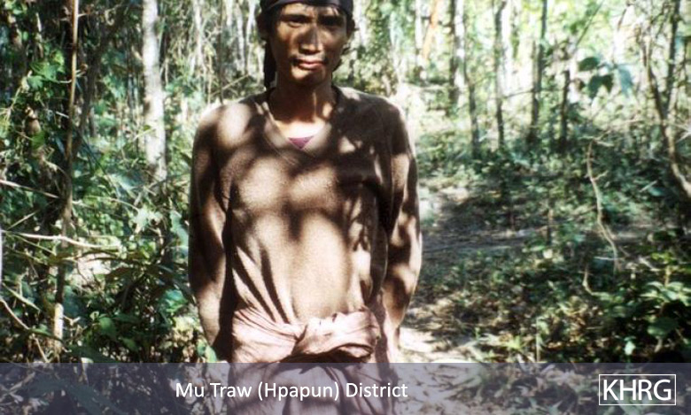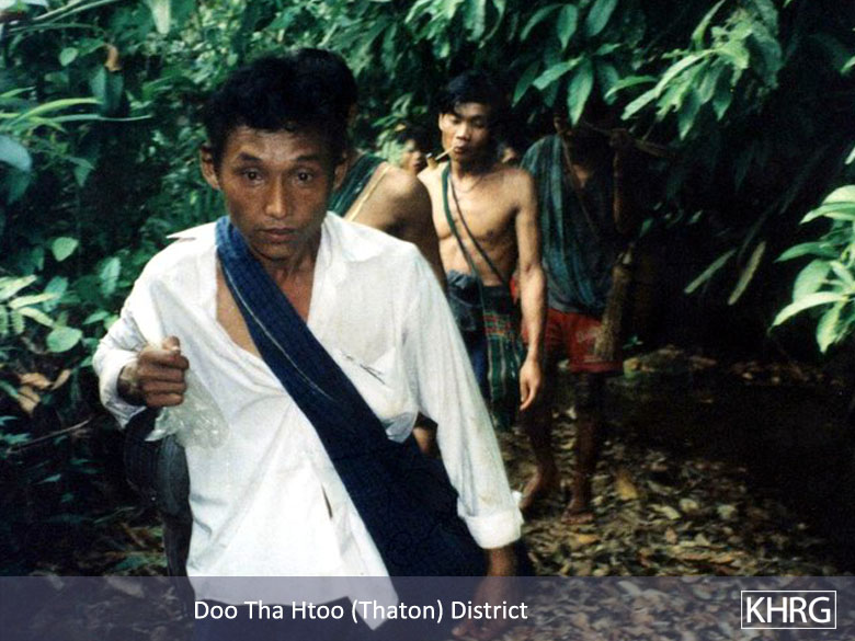 These photos were taken and collected by KHRG since the publication of Photo Set 2001-A in September 2001. The photos in this set were taken in Toungoo, Nyaunglebin, Papun, Thaton, Pa’an and Dooplaya Districts. The photos have been divided into separate headings: ‘Forced Labour’, 'Attacks on Villages & Village Destruction', 'Detention and Torture', 'Shootings and Killings', 'Flight and Displacement', 'Landmines', 'Soldiers', 'Children', and 'Food'. Brief descriptions of the topics covered under each heading are provided at the beginning of each section.