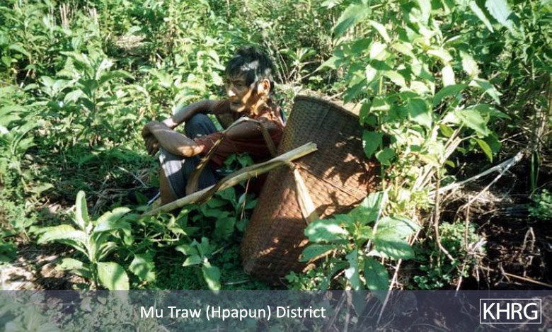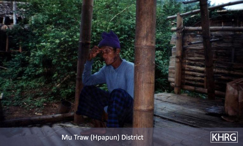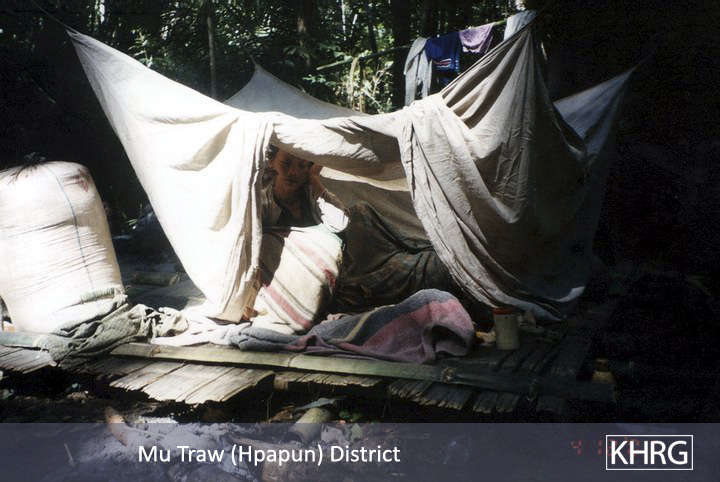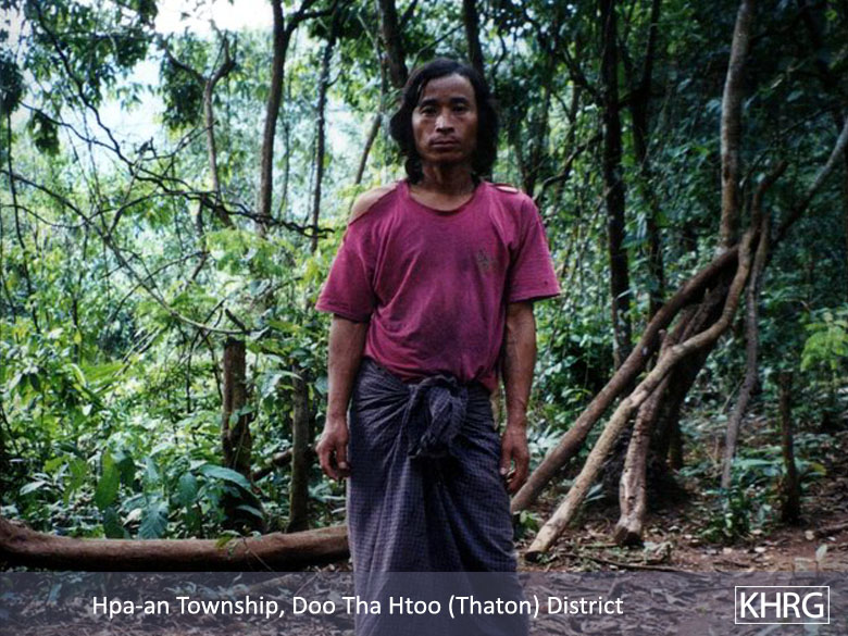 Photo #E111: This man was forced to flee the B--- area of western Papun District after battalions of Military Operations Command #10 began sweeping the area to clear it of village. Photo #E111: This man was forced to flee the B--- area of western Papun District after battalions of Military Operations Command #10 began sweeping the area to clear it of villagers in May 2002. [Photo: KHRG researcher]ers in May 2002. [Photo: KHRG researcher]