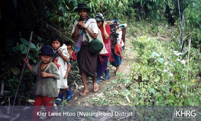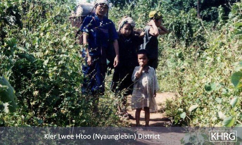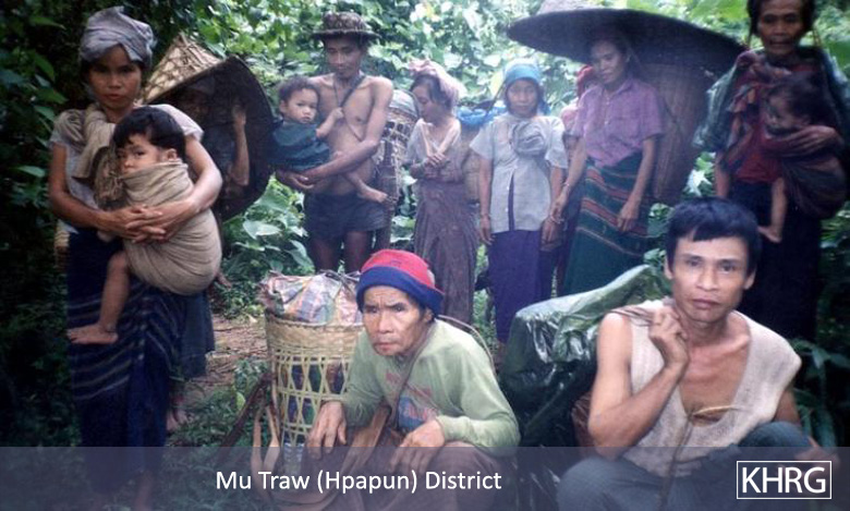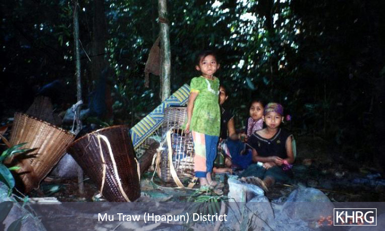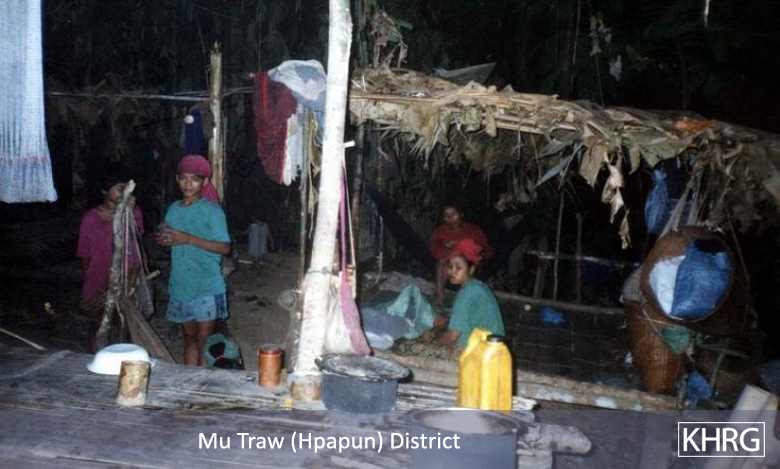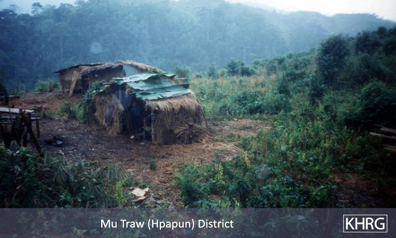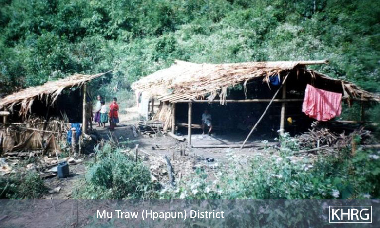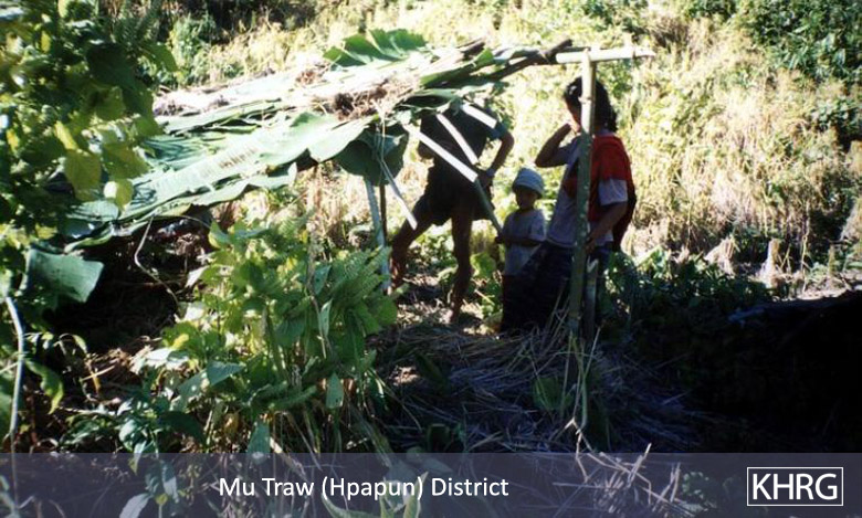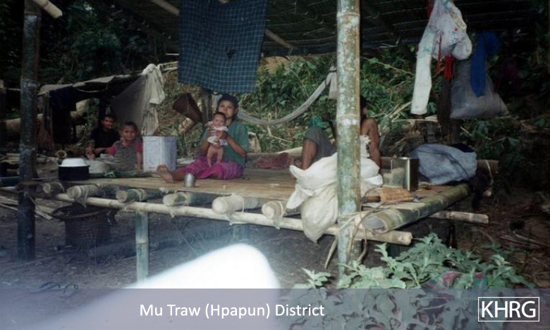 Although the risks are high, most villagers would prefer to remain near their fields, or at least on some land where they may be able to grow a crop, rather than fleeing across the border into Thailand. The internally displaced villagers would rather hold on to the hope of one day being able to go home and live in their own villages. The smaller number that do make the long and dangerous trip to Thailand usually only do so after all hope of growing a crop or having enough food to survive until they can grow a crop has completely gone. Several hundred thousand villagers live a very precarious existence in Karen State alone. Much of the population in the mountains of Toungoo District in the north chooses to live in hiding in the forest rather than live in the SPDC-controlled 'peace villages' or relocation sites. where they must serve as forced labour for the SPDC's spreading road network and as porters (see "Peace Villages and Hiding VIllages", KHRG #2000-05, 15/10/00). Slightly further south, the SPDC has systematically destroyed more than 200 villages since 1997 in the hills of Nyaunglebin and northern Papun districts. This has forced more than 50,000 people to flee into the forests where they still remain in hiding (see "Flight, Hunger and Survival", KHRG #2001-03, 22/10/01).