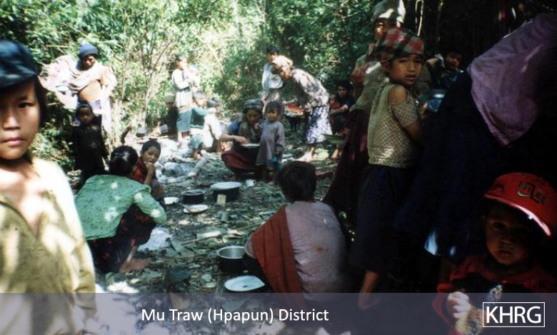 In Dooplaya District of southern Karen State, SPDC battalions began in February 2002 a campaign of village relocations and destructions which is still ongoing. When the relocation orders were received many villagers opted to flee into the forest or to Thailand. Some villagers who did not go to the relocation sites by the specified deadlines have been shot on sight. In one case in late April, Infantry Battalion #78 discovered a group of villagers attempting to flee to Thailand and massacred ten of them, leaving nine others wounded. Six of the ten dead were children; eight were women and girls. (see Photos #D4-D7 and KHRG Information Update #2002-U5, 25/9/02).