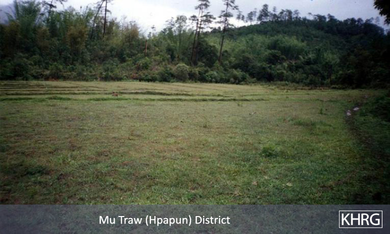 Photo #I6: The flat fields in M--- village, eastern Papun District, lie deserted after villagers fled the area earlier in 2002. The villagers were able to work their fields in 2001, but the SPDC built a camp next to the fields in 2002 and the villagers could no longer work them out of fear of the patrolling soldiers who would shoot them on sight. The fields have become overgrown with grass. [Photo: KHRG researcher]