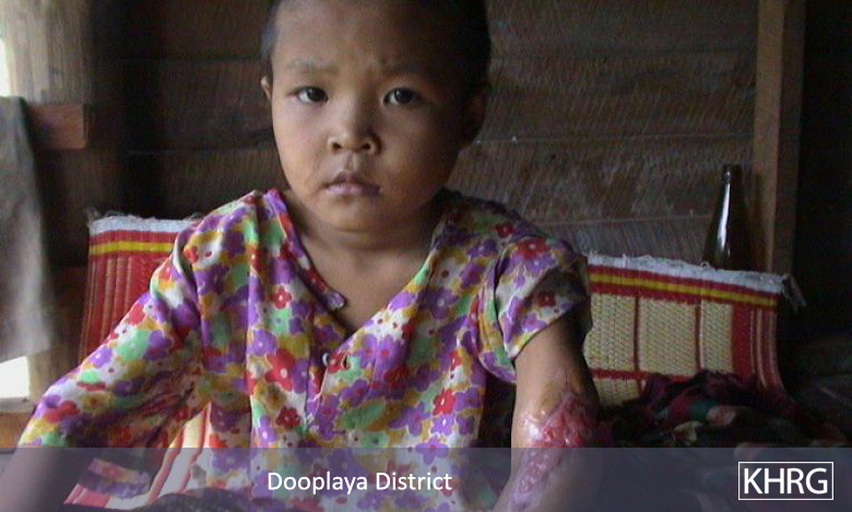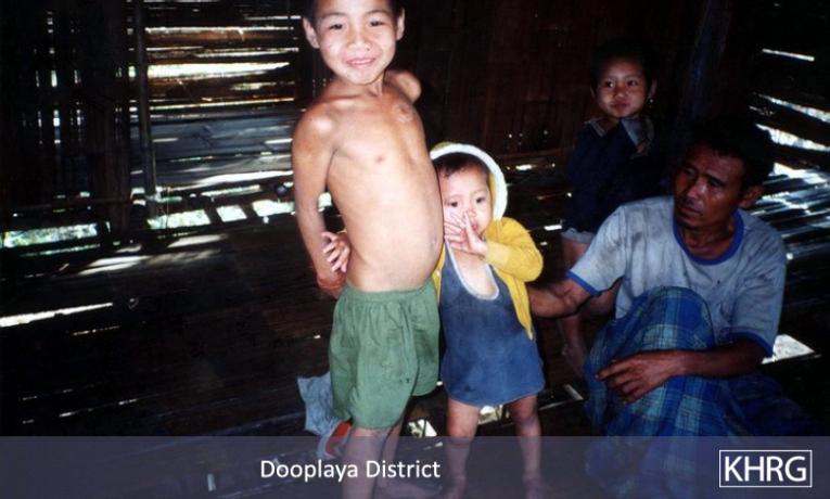 This photo set contains more than 500 photos and their descriptions which document the human rights situation in Karen areas of Burma.  These photos were taken and collected by KHRG since the publication of Photo Set 2001-A in September 2001.  The photos in this set were taken in Toungoo, Nyaunglebin, Papun, Thaton, Pa’an and Dooplaya Districts.  The photos have been divided into separate headings: ‘Forced Labour’, 'Attacks on Villages & Village Destruction', 'Detention and Torture', 'Shootings and Killings', 'Flight and Displacement', 'Landmines', 'Soldiers', 'Children', and 'Food'. Children in the Karen areas of Burma are frequently the victims of forced labour, detention, torture, killings, village destruction, displacement, landmines and each of the other forms of human rights abuses documented in this photo set.  They suffer from these abuses as individuals and as part of a family and the village community.