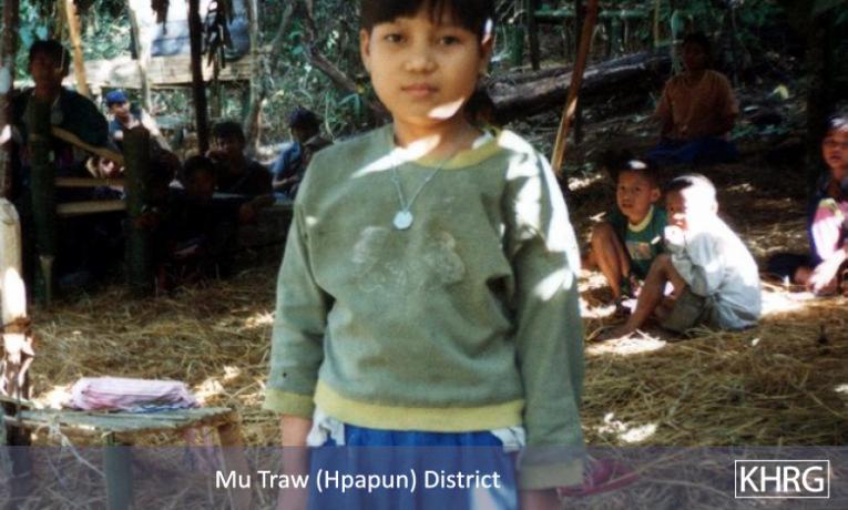 This photo set contains more than 500 photos and their descriptions which document the human rights situation in Karen areas of Burma. These photos were taken and collected by KHRG since the publication of Photo Set 2001-A in September 2001. The photos in this set were taken in Toungoo, Nyaunglebin, Papun, Thaton, Pa’an and Dooplaya Districts. The photos have been divided into separate headings: ‘Forced Labour’, 'Attacks on Villages & Village Destruction', 'Detention and Torture', 'Shootings and Killings', 'Flight and Displacement', 'Landmines', 'Soldiers', 'Children', and 'Food'. Children in the Karen areas of Burma are frequently the victims of forced labour, detention, torture, killings, village destruction, displacement, landmines and each of the other forms of human rights abuses documented in this photo set. They suffer from these abuses as individuals and as part of a family and the village community.