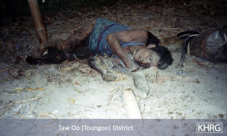 This photo set contains more than 500 photos and their descriptions which document the human rights situation in Karen areas of Burma.  These photos were taken and collected by KHRG since the publication of Photo Set 2001-A in September 2001.  The photos in this set were taken in Toungoo, Nyaunglebin, Papun, Thaton, Pa’an and Dooplaya Districts.  The photos have been divided into separate headings: ‘Forced Labour’'Attacks on Villages & Village Destruction''Detention and Torture''Shootings and Killings''Flight and Displacement''Landmines''Soldiers''Children', and 'Food'.  Brief descriptions of the topics covered under each heading are provided at the beginning of each section.  More detailed information on the abuses and the regions is available in KHRG documentary reports, several of which are referenced in the text below.  Of important note is that many of the abuses documented in this photo set occurred after Aung San Suu Kyi was released from house arrest in May 2002 and international attention increasingly began to focus on an imminent agreement between the SPDC and the National League for Democracy.  These photos graphically demonstrate that while the international community discusses the ‘progress’ in Rangoon, gross human rights abuses continue to be committed by SPDC forces in the countryside.  The numerous forced labour photos in this set have been taken since the SPDC claimed that it had put an end to forced labour, most of them since the International Labour Organisation’s High Level Team released its report criticising the regime's continued use of forced labour and its inadequate attempts to halt the practice.