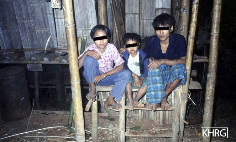 Photo #E92: This family from K--- village in eastern Papun District does not have any rice or paddy anymore and they can no longer work their hill field because the SPDC troops are operating in the area. They have to go and ask for food from other villages. To do this they have to avoid patrolling SPDC soldiers and hope that they do not step on a landmine. They told a KHRG researcher that they are afraid to go, but they have to do it anyway. [Photo: KHRG researcher]