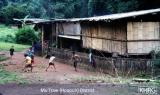 Photos #E122, E123: Children at xxxx internally displaced villager hiding site in northern Papun District play football after school has finished for the day. The children in hiding sites such as this spend much of their time after studying helping their parents with household chores or taking care of siblings, and have little chance to play. They are using a pomelo as a football because they do not have anything else. They are luckier than most displaced children in that their parents have managed to build them a school here. [Photos: KHRG researcher]