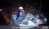 Photos #E26, E27: Villagers from L--- village, Papun District rest in a dry riverbed after fleeing an SPDC column. The soldiers of Tactical Operations Command #333 of LID #33 entered L--- village on November 25th 2001 causing the villagers to flee. The soldiers stayed in the village for several days looting the villagers' livestock and possessions and then burned and destroyed what remained. The presence of SPDC soldiers in L--- village caused the villagers in surrounding villages to flee into the forest in case the column came to their villages as well. Most of the villagers were unable to take blankets and clothes with them when they fled. November is the beginning of the cold season, when night temperatures can drop close to freezing in these hills, but the villagers are unable to light fires out of fear of the nearby SPDC troops. Some of the villagers have become sick and have coughs and fevers because of the cold. The cold is especially bad for the children and the elderly. [Photos: KHRG researcher]