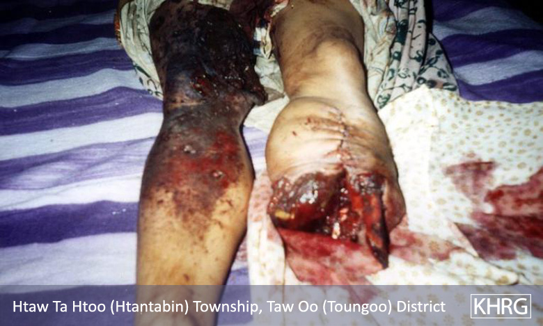 This 37 year old villager from Tantabin township stepped on a landmine planted by IB #53 while going to his plantation in March 2003. [Photo-KHRG]