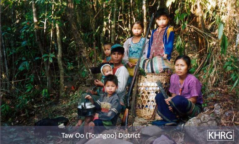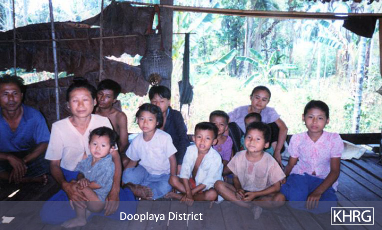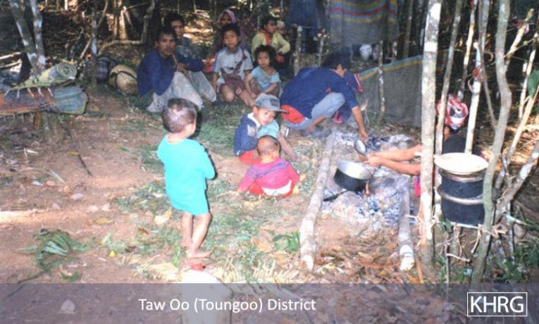 The photos in this section were taken in Toungoo, Nyaunglebin and Papun districts in northern Karen State, Pa'an and Thaton districts in central Karen State, and Dooplaya district in southern Karen State. Most are from the northern districts, where the terrain makes it possible for tens of thousands of villagers to live in hiding and continue evading SPDC control. Some of the photos show villagers from southern Karenni (Kayah State) who have fled to these northern Karen districts to evade SPDC control. In Thaton, Pa'an and Dooplaya districts, SPDC control is more pervasive and there are fewer areas to hide, so villagers sometimes have little choice but moving to a forced relocation site or trying to escape to Thailand. Though numbers are impossible to accurately establish, the number of Karen villagers known to be displaced in the areas shown in these photos is in the hundreds of thousands.