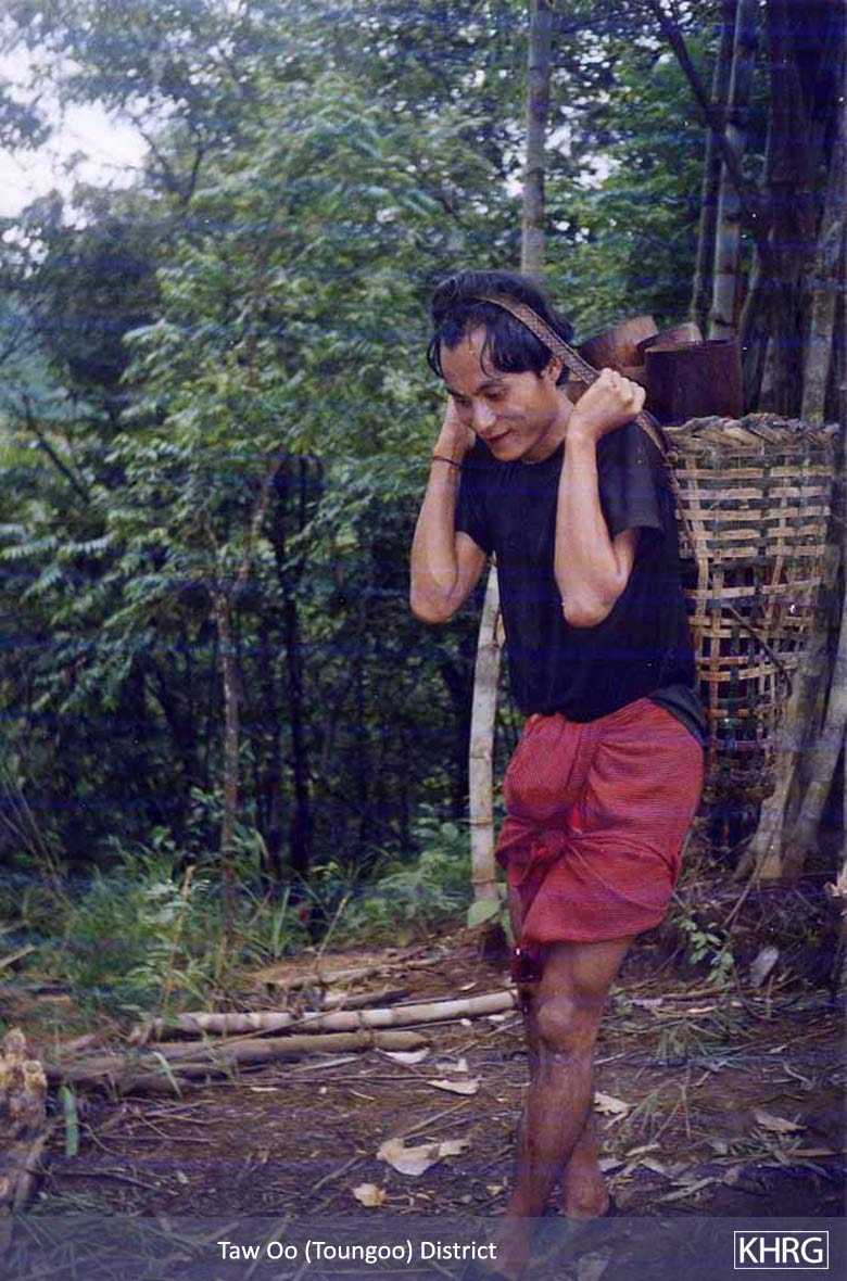 People who move from their home areas to SPDC-controlled areas or forced relocation sites are usually cut off from their home fields, which rapidly degenerate (see photos 7-59 to 7-60 ). Most of them have to find ways to survive by doing paid day labour for farmers or others, supplemented by foraging whatever they can. Combined with the regular forced labour now demanded of them, many find it too difficult to survive and end up fleeing back into their home areas despite the risks.