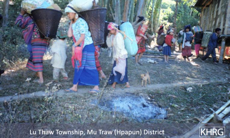 Flight and displacement takes on many different forms in rural Karen areas. In SPDC-controlled villages, people find they can no longer survive adequately due to the demands for forced labour, the extortion, and the regime of restrictions they face in their daily lives, and leave their village for areas where the SPDC has less control. People in remoter areas are issued forced relocation orders and either move to the relocation site as ordered, or move into hiding near their village. Hill villagers find they can no longer farm because a new road lined with SPDC Army camps is pouring SPDC troops into their area, so they move into the higher hills. People already living in hiding in the forests have to flee to remoter areas when SPDC columns come too close. Villagers in forced relocation sites, cut off from access to their land, find they cannot survive and flee back to the area of their home village. These are only a few examples.