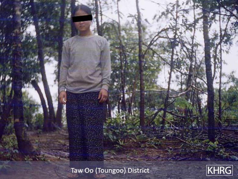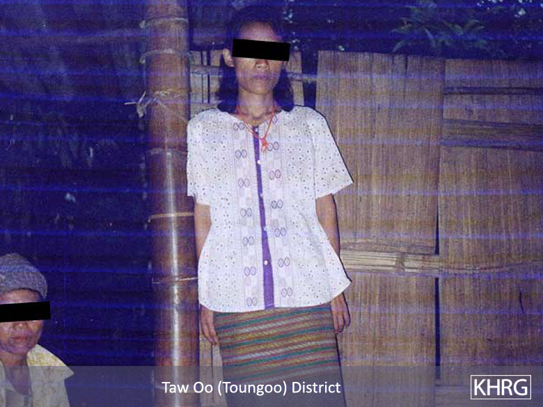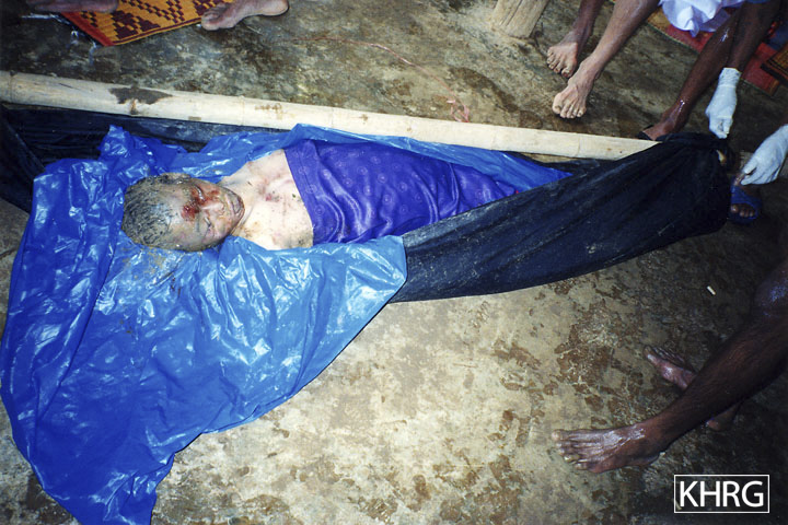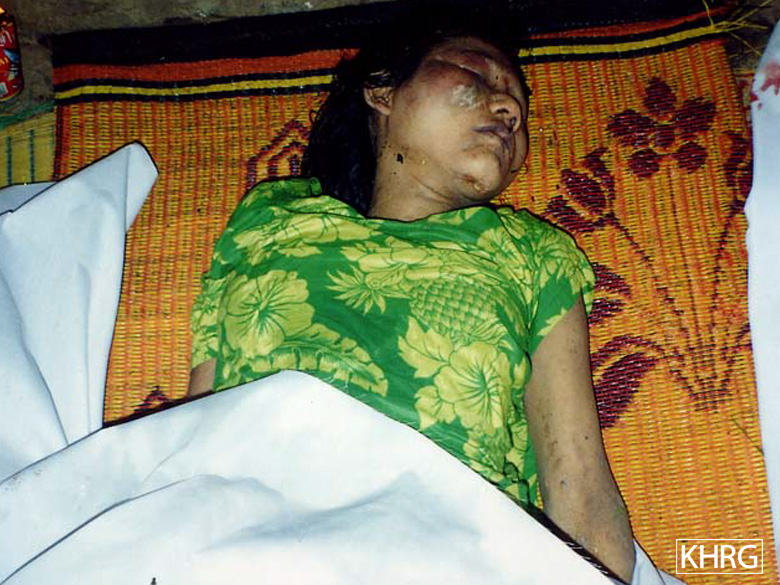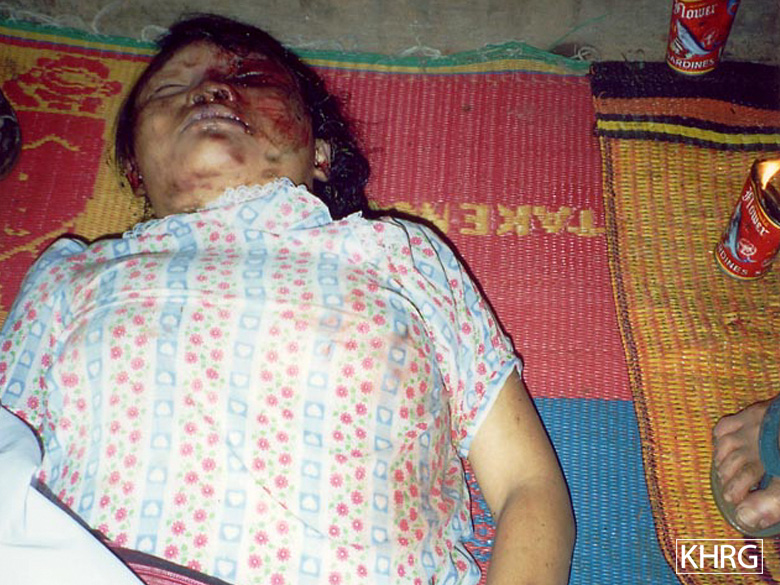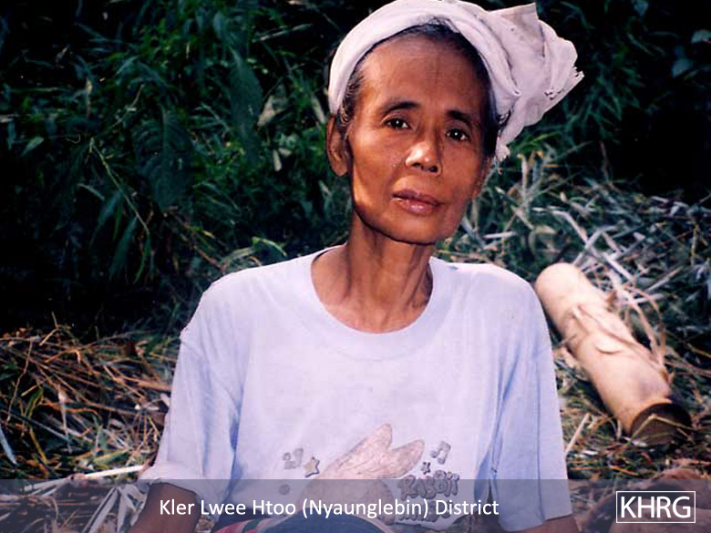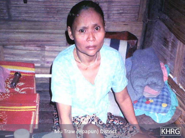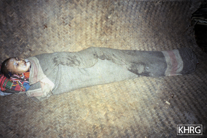 Photo #8-20: Naw Baw Kyaw, age 40, fled her village in 2002 because of SPDC abuses and their destruction of villages in Lu Thaw township, Papun district. Living in the forest, she fell sick and there was no medicine, so she died on September 23 rd 2002. [Photo: KHRG researcher]
