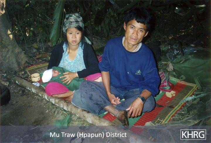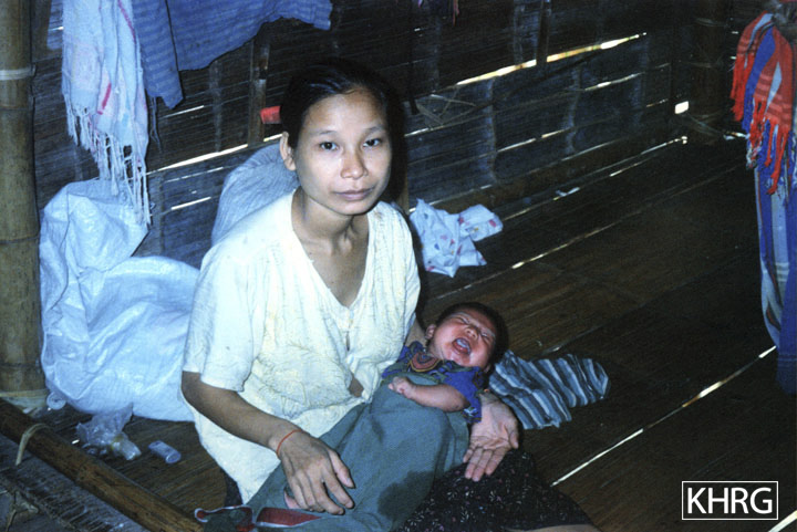 Photo #8-15: Saw A--- and Naw W--- were fleeing an SPDC column in Lu Thaw township, Papun district when their baby was born in the jungle on January 6 th 2004. This photo was taken two days later. [Photo: KHRG researcher]