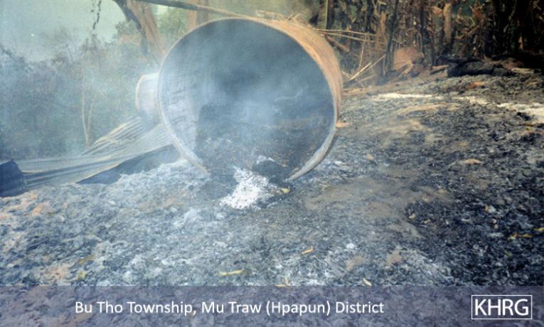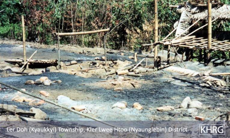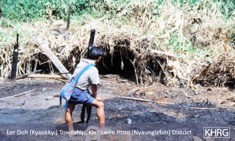People living under SPDC control are not exempt from being attacked by the SPDC Army. The stream of demands for forced labour, money and materials they face is often impossible to meet, and when they fail their village leaders are arrested (see Section 4 [ Detention and Torture ]) or soldiers come and shoot up their village ( photos 2-1 to 2-3 ). Soldiers also attack villages to retaliate for Karen resistance activity in the area ( photo 2-20 ), or simply in order to loot the village ( photo 2-14 ). In some villages this is so common that villagers build bunkers underneath their houses ( photo 2-20 ).